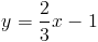Since we determined that m = 2/3 and that b = -1, we can plug these values straight into our slope-intercept formula. This yields